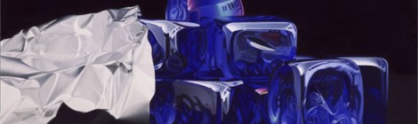 Dei cubi di vetro blu. 2007 Oil on canvas, 92×40 cm Private Collection.